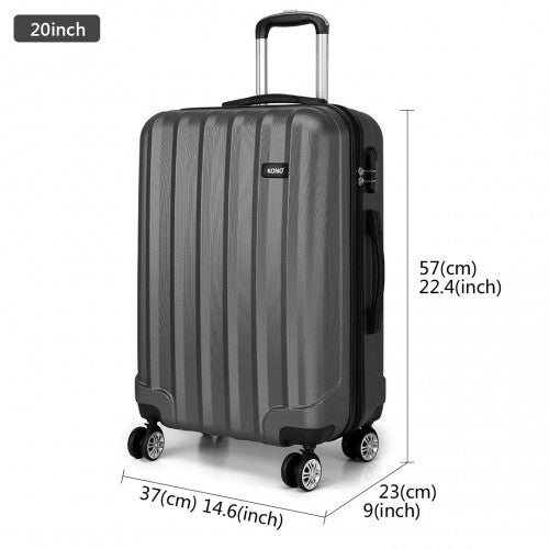 Kono Vertical Stripe Hard Shell Suitcase 20 Inch Luggage Set Grey