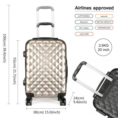 Kono Multifaceted Diamond Pattern Hard Shell 20 Inch Suitcase - Gold