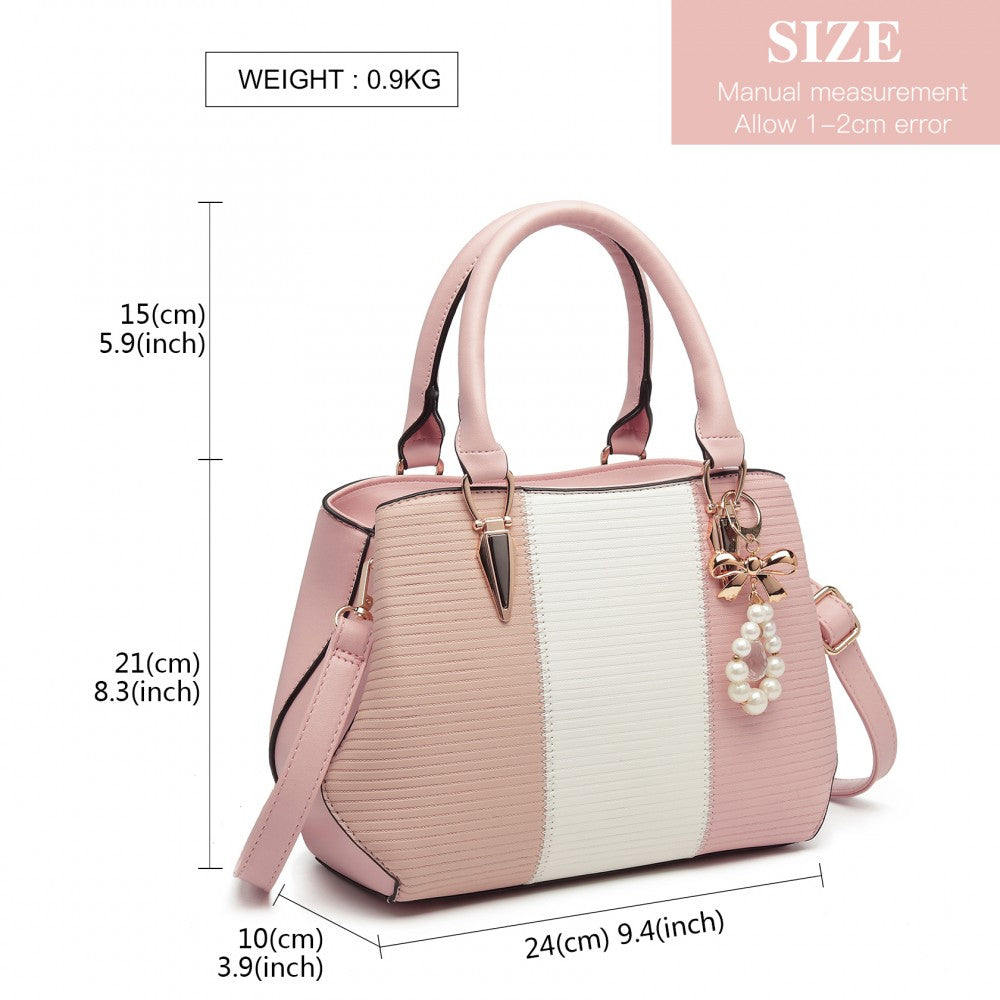 Miss Lulu Leather Look Colour Block Bow Pendant Handbag - Pink