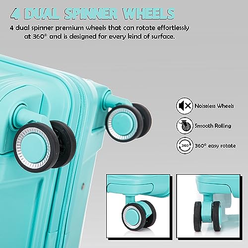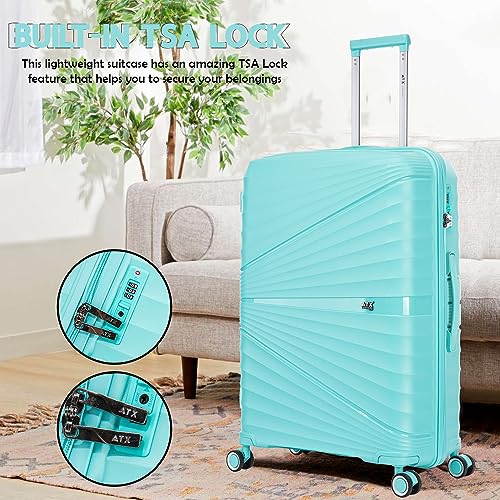 ATX Luggage Cabin Suitcase Lightweight Durable Polypropylene Carry on Suitcase with 4 Dual Spinner Wheels and Built-in TSA Lock (Mint Green, 21 Inches, 38 Liter)