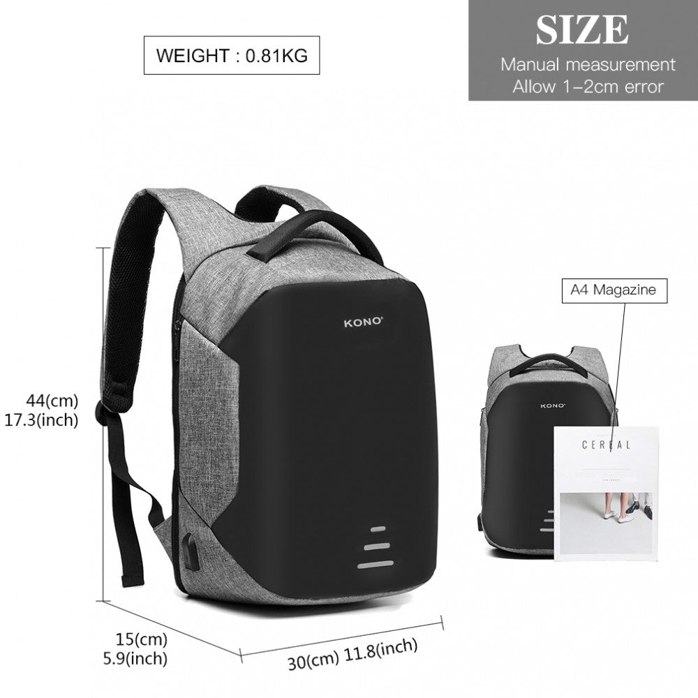 Kono Reflective USB Charging Interface Backpack - Grey