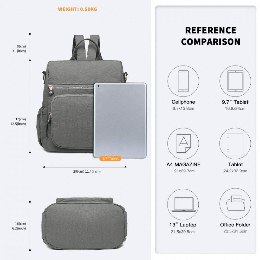 Kono Multi Way Anti-Theft Waterproof Backpack Shoulder Bag - Grey