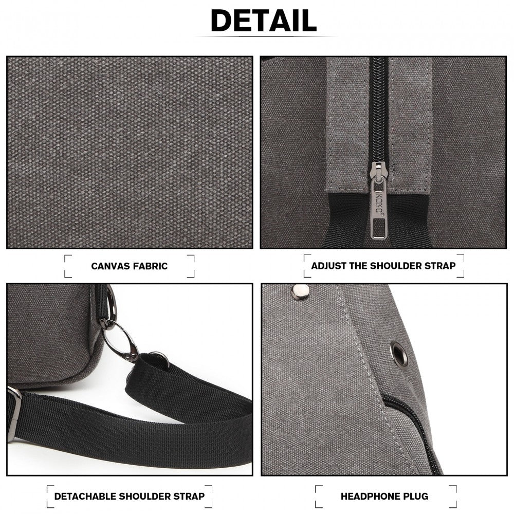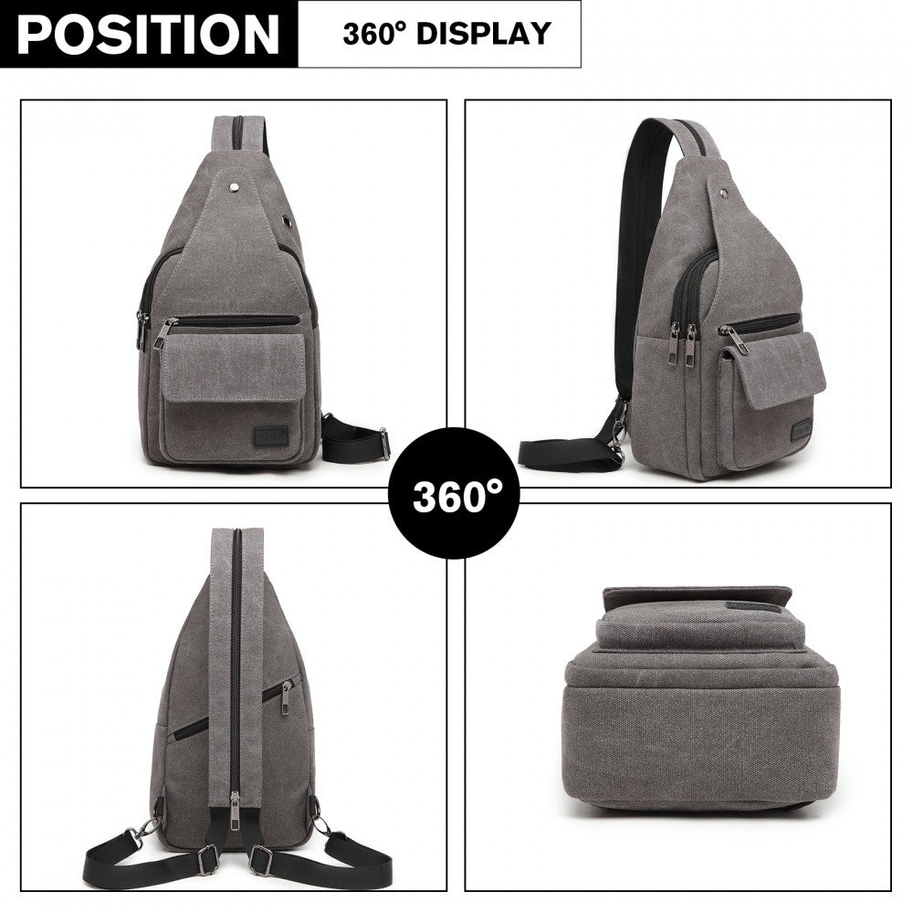 Kono Casual Canvas Single Strap Sling Backpack - Grey