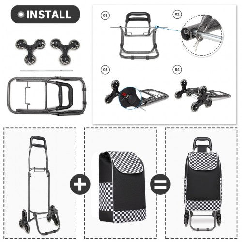 EQ2259 - Kono 6 Wheel Push Shopping Trolley - Black