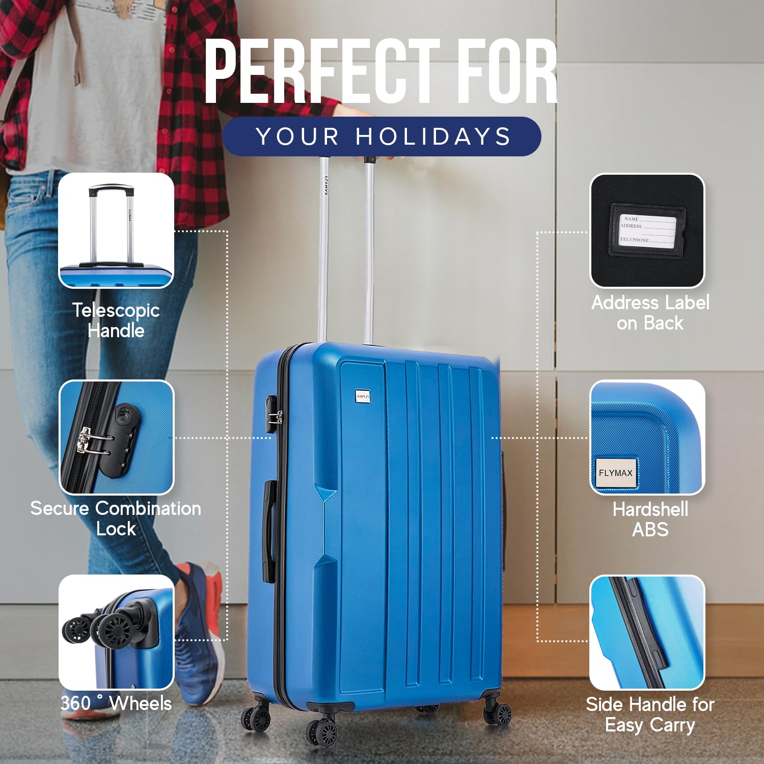 FLYMAX 24" Medium Suitcase Super Lightweight 4 Wheel Spinner Hard Shell ABS Luggage Hold Check in Travel Case