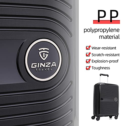 GinzaTravel PP material Hardside Spinner, Carry-On, Wear-resistant, scratch-resistant Suitcase Luggage with Wheels, Black Color, 20-Inch