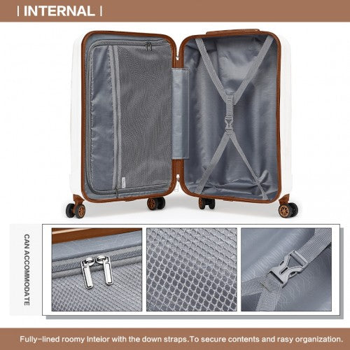 Kono 19 Inch Cabin Size ABS Hard Shell Luggage With Vertical Stripes - Ideal For Carry-On - Cream