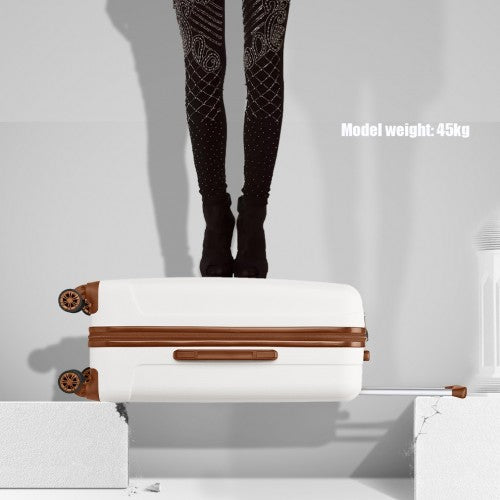 Kono 24 Inch Striped ABS Hard Shell Luggage With 360-Degree Spinner Wheels - Cream