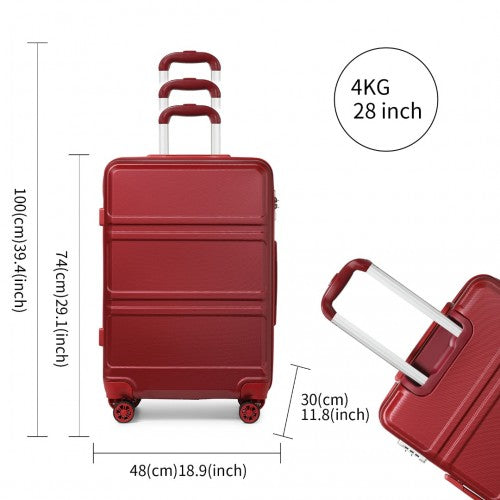Kono ABS 28 Inch Sculpted Horizontal Design Suitcase - Burgundy