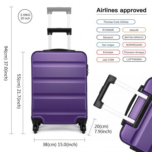 Kono Horizontal Design Abs Hard Shell Luggage 20 Inch Suitcase - Purple