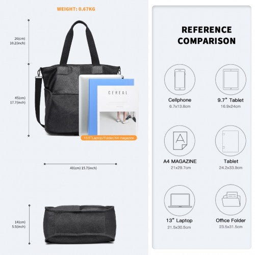 Kono Paneled Contrast Large Capacity Canvas Shoulder Bag - Black