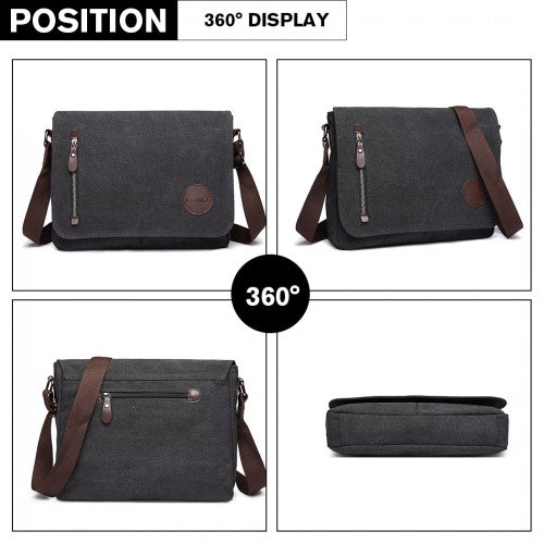Kono RFID-Blocking Retro Style Canvas Cross Body Messenger Bag - Black