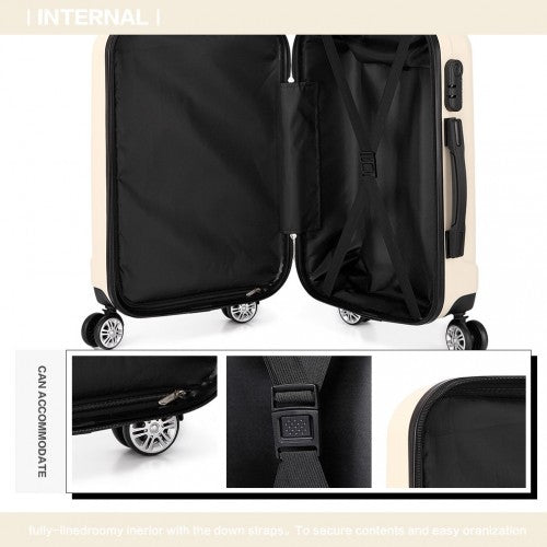 Kono Vertical Stripe Hard Shell Suitcase 28 Inch Luggage Set - Biege