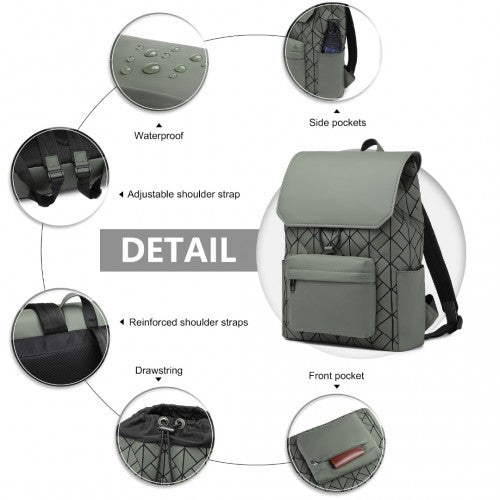Kono Water-Resistant Urban Geometric Backpack with Laptop Compartment - Green