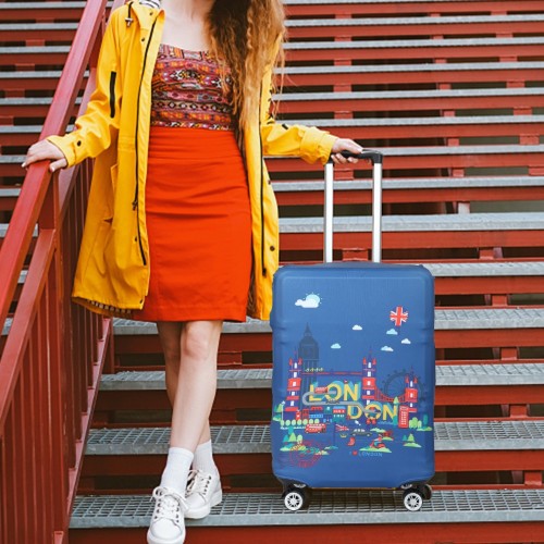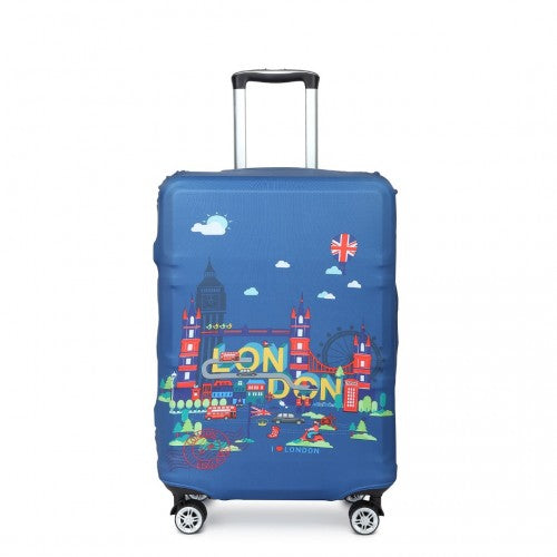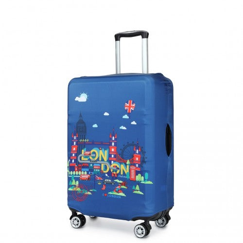 L-Cover-2 - Elastic Luggage Cover With Printed Design Medium - Navy