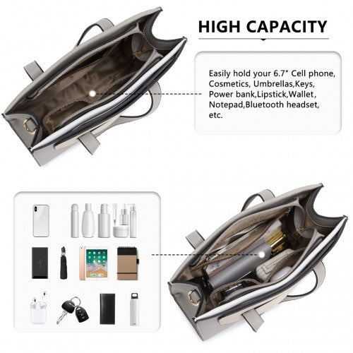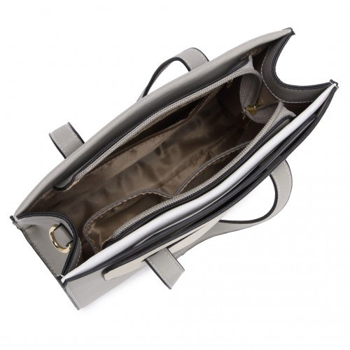 Miss Lulu Contrast Panel Shoulder Bag - Grey And Beige