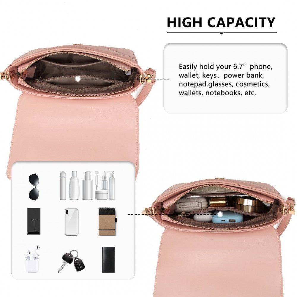 Miss Lulu Diamond Quilted Leather Chain Shoulder Bag - Pink