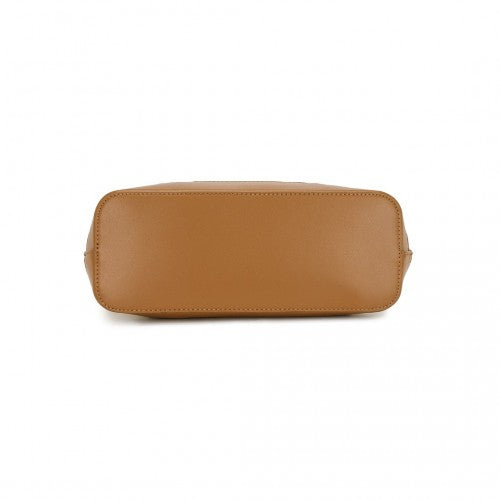 Miss Lulu Elegant PVC Leather Tote Bag with Monogram Pattern Convertible Shoulder Strap Top Handle Women's Handbag - Beige