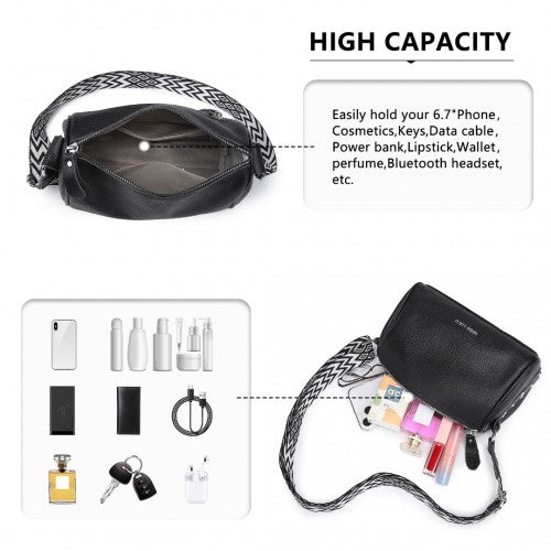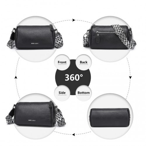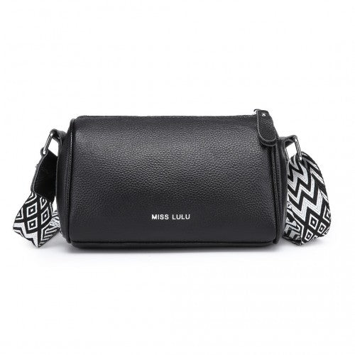 Miss Lulu Lightweight Wide Strap Genuine Leather Crossbody Bag - Black