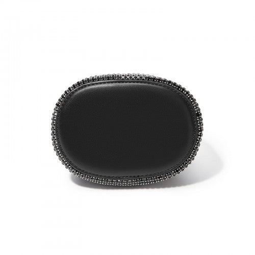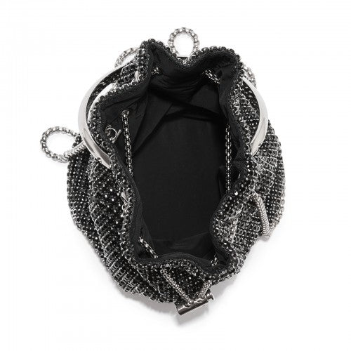 Women's Rhinestone Evening Bag – Sparkly Handbag with Metal Ring Handle and Chain Crossbody Strap - Black