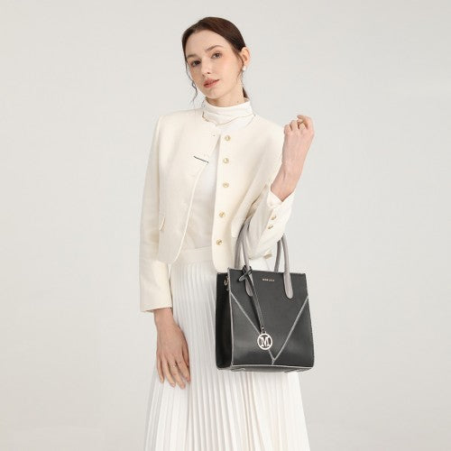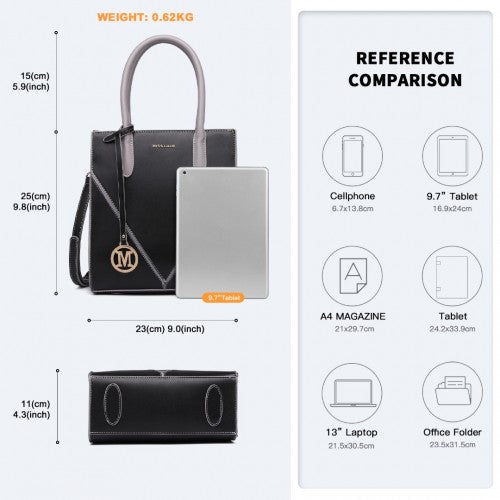 Miss Lulu Rectangular Soft Leather Cross Body Bag - Black