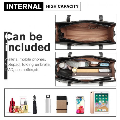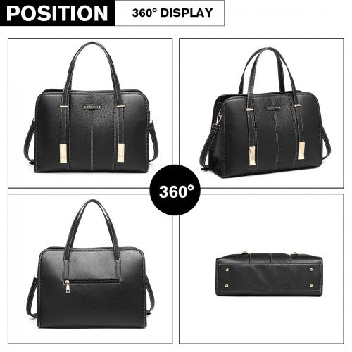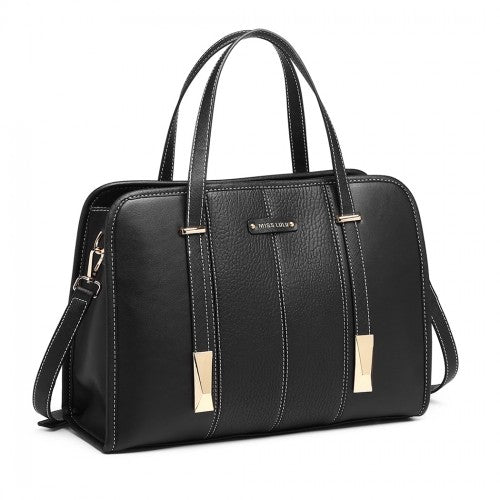 Miss Lulu Structured Panel Shoulder Bag - Black