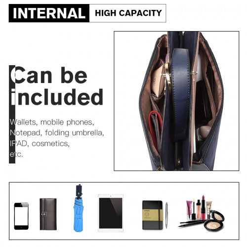 Miss Lulu Stylish Ladies Leather Handbag Shoulder Bag - Navy