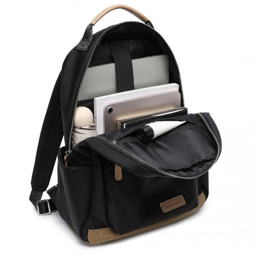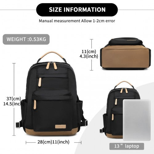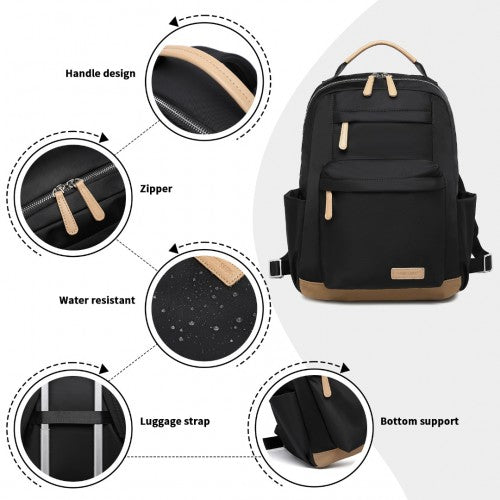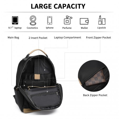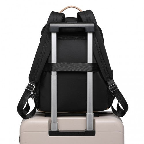 Miss Lulu Stylish Women’s Backpack with Laptop Sleeve and Multiple Pockets and Trolley Sleeve - Black/Apricot