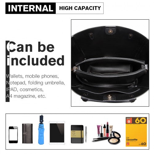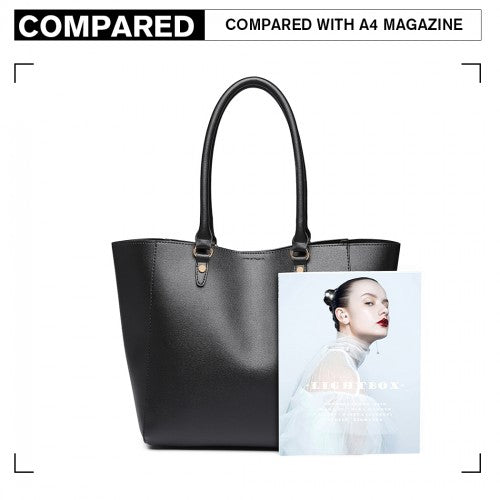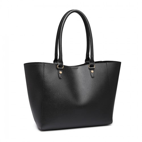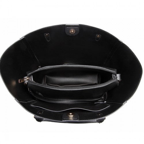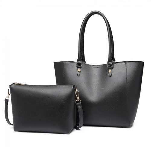 Miss Lulu Textured Leather Look 2 Piece Tote And Shoulder Bag Set - Black