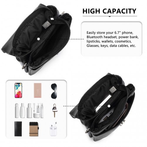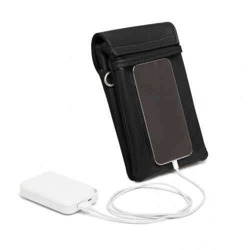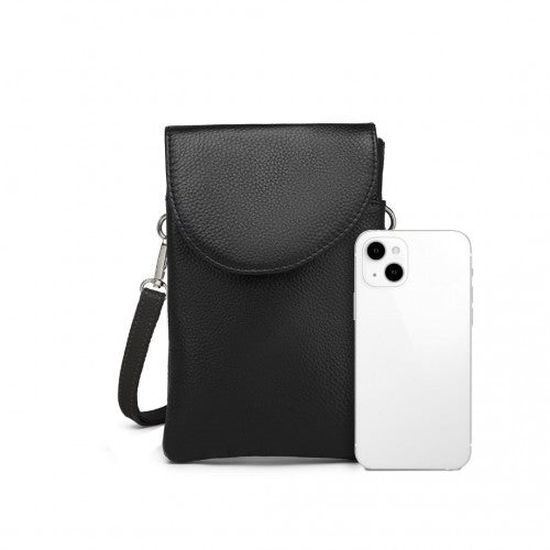 Miss Lulu Touch Screen Genuine Leather Small Crossbody Bag - Black
