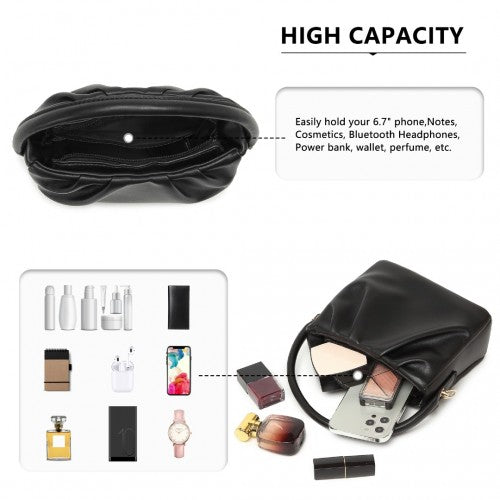 Miss Lulu Women's Soft Leather Pleated Handbag - Black