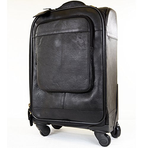 Super Soft Premium Leather Spinner Trolley Case - Black