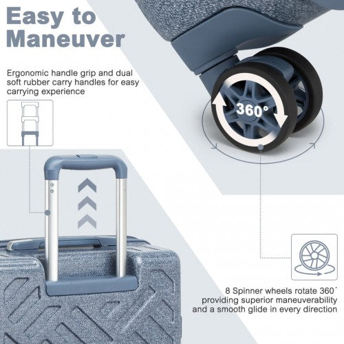 Supercase 20 Inch Sleek Geometric Pattern Hard Shell ABS+PC Cabin Carry-On Suitcase with TSA Lock - Denim Blue