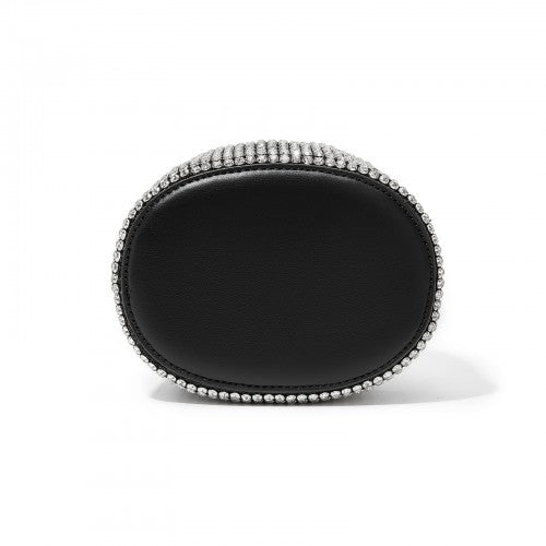 Women's Rhinestone Evening Bag – Sparkly Handbag with Metal Ring Handle and Chain Crossbody Strap - Silver
